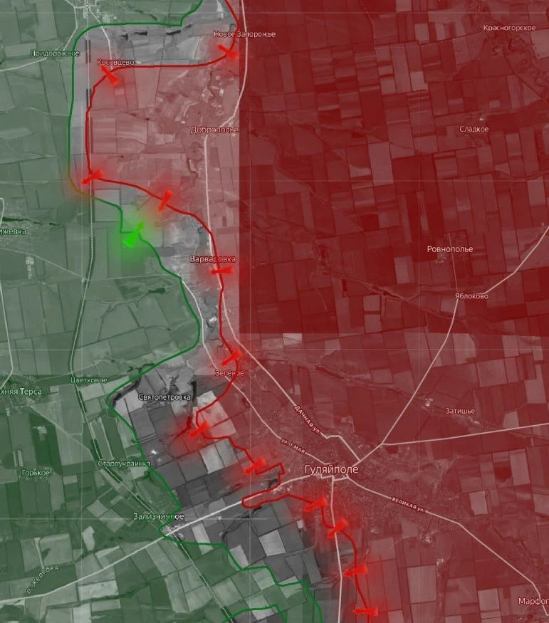 На Запорожском участке у ВСУ признают практически полную утрату Приморского, и бои в районе Речного и на подступах к Веселянке. ВС РФ повредили мост через р. Конка между Веселянкой и Григорьевкой, а также наносят удары по местам запуска дронов и огневым позициям ВСУ в Малокатериновке. Севернее Лукьяновского наши войска штурмуют Магдалиновку с южной и западной сторон. Идут бои за опорники южнее Новояковлевки. У Павловки также тяжёлое сражение, есть продвижение южнее этого села. После освобождения Белогорья ВС РФ с новыми силами начали пробиваться к Орехову. Идут бои в районе Малой Токмачки, где наши войска продвигаются вдоль южного берега Конки, а также в районе Новоданиловки.