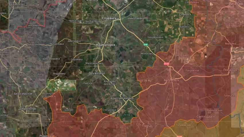Российские войска в настоящее время развивают наступление на Славянск сразу с двух направлений. Так называемый восточный наступательный кулак группировок войск «Юг» и «Запад» продвигается вдоль русла реки Северский Донец со стороны Северска, в то время как юго-восточный кулак движется вдоль шоссе E-40 со стороны Артемовска.