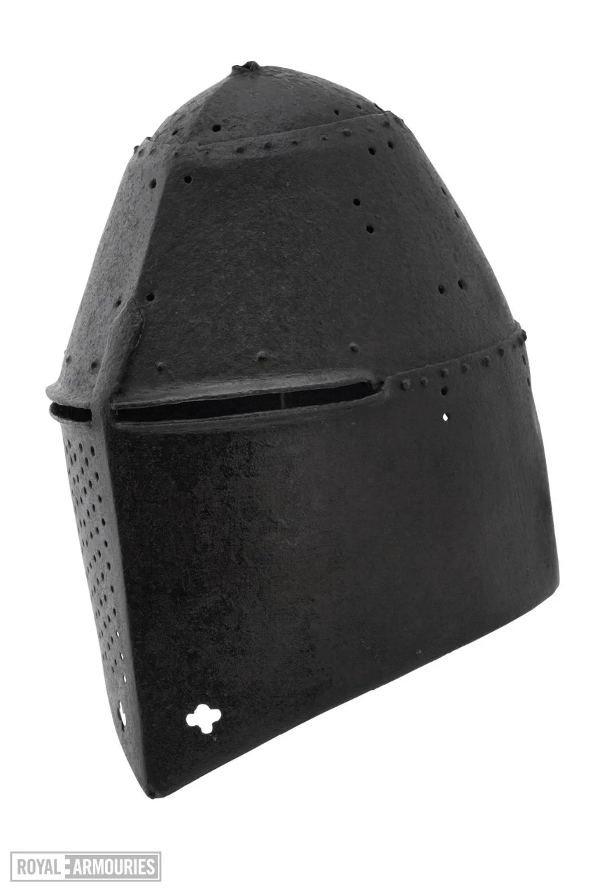Шлем из Королевского арсенала в Лидсе. Крестообразное отверстие внизу – для крепления цепи