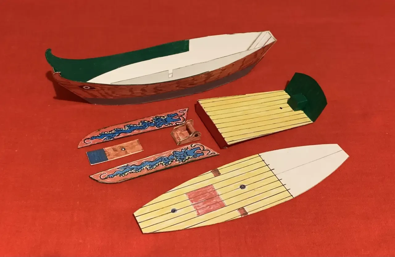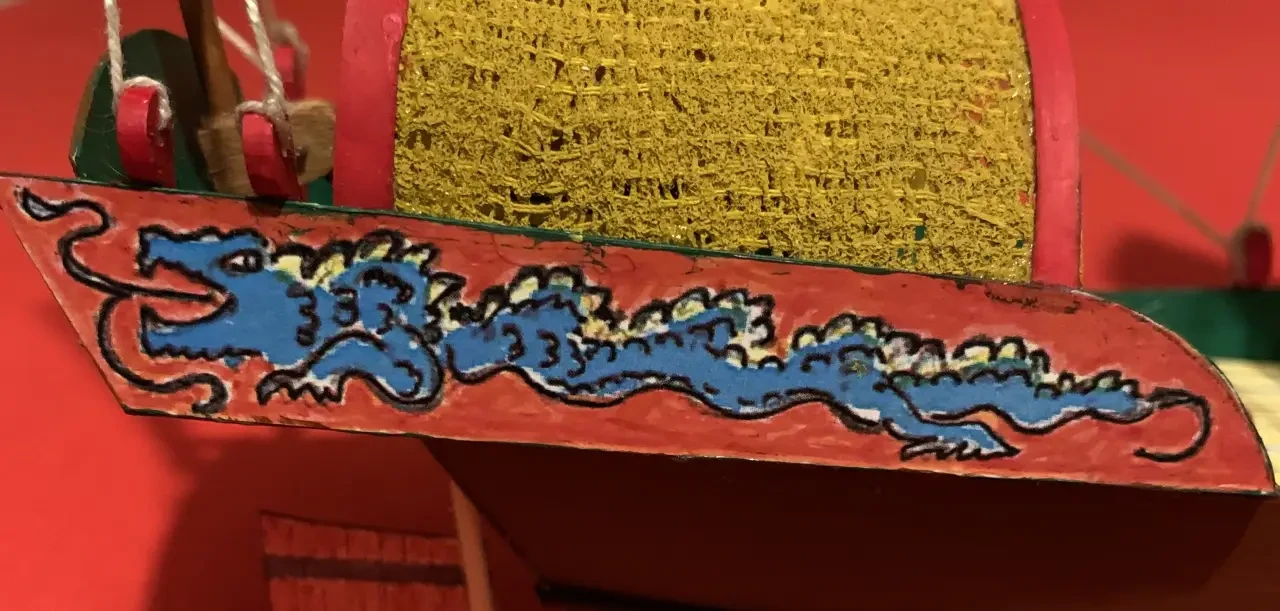 Очень простая модель китайской джонки, практически полностью сделанная из бумаги. Фотография автора