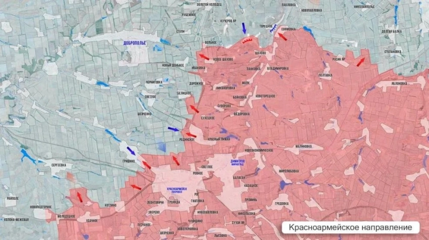 Восточнее Петропавловки российские войска закрывают «карман», взяв под контроль территорию площадью 13 км² на участке шириной 7 км.