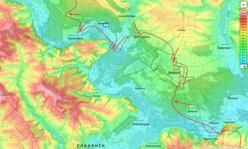 Согласно имеющимся у него данным, российские подразделения «поджимают» украинские силы в черте города с флангов, наступая со стороны населенного пункта Диброва. Кроме того, российские войска перекрывают оставшиеся маршруты снабжения и связи ВСУ в районе Красного Лимана.