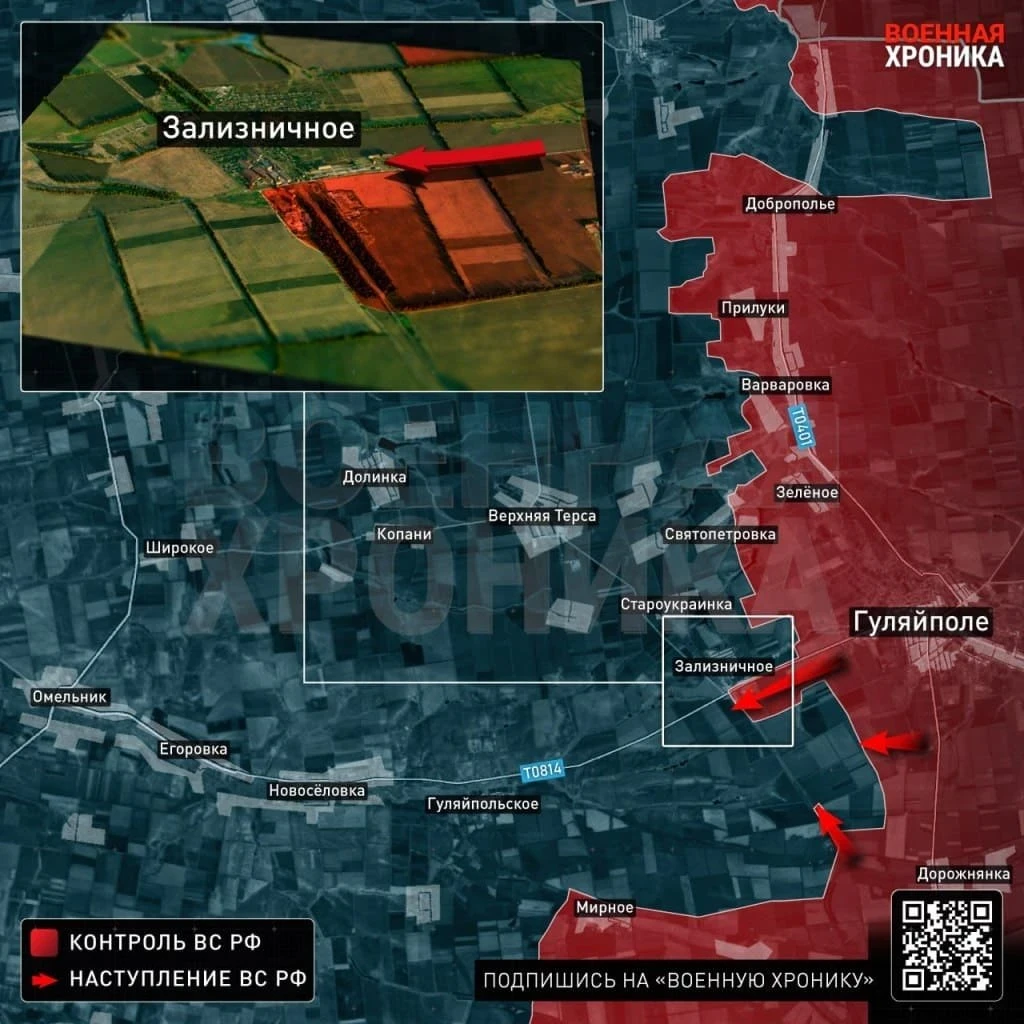 На соседнем Гуляйпольском участке инициатива также в руках российской армии. Бойцы ВС РФ успешно отбили серию контратак в районе Гуляйполя и Покровского и перешли в наступление, пробиваясь к Зализничному сразу с востока и юга. Поступают сообщения о работе наших диверсионно-разведывательных групп (ДРГ) уже на южных окраинах поселка, однако говорить о полноценном закреплении пока преждевременно, информирует Олег Царёв в своём Telegram-канале.
