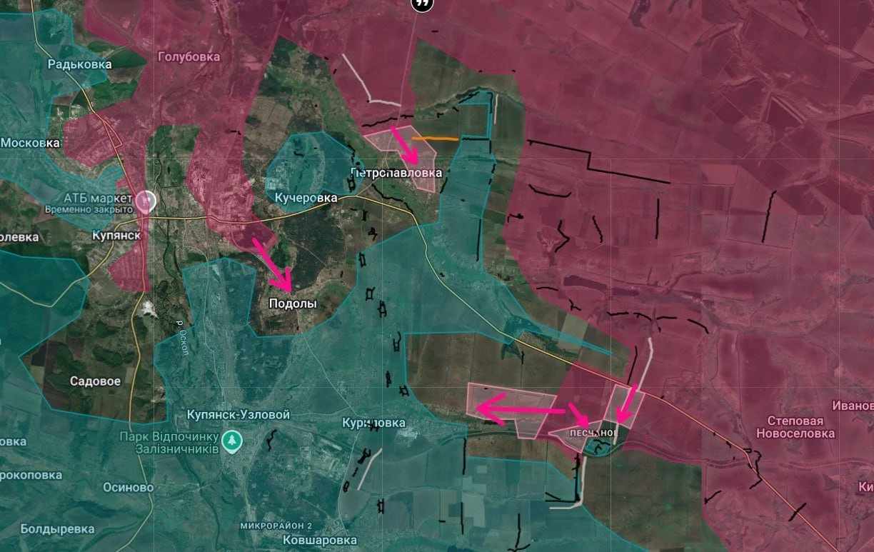 По данным источников с мест, ожесточенные встречные бои продолжаются в районе Подолов, Куриловки и Песчаного. Объективных свидетельств присутствия российских регулярных частей в самом Купянске-Узловом или на его непосредственных подступах на данный момент в открытом доступе нет. Вероятно, речь идет о динамичной ситуации, требующей уточнения в ближайшие сутки.