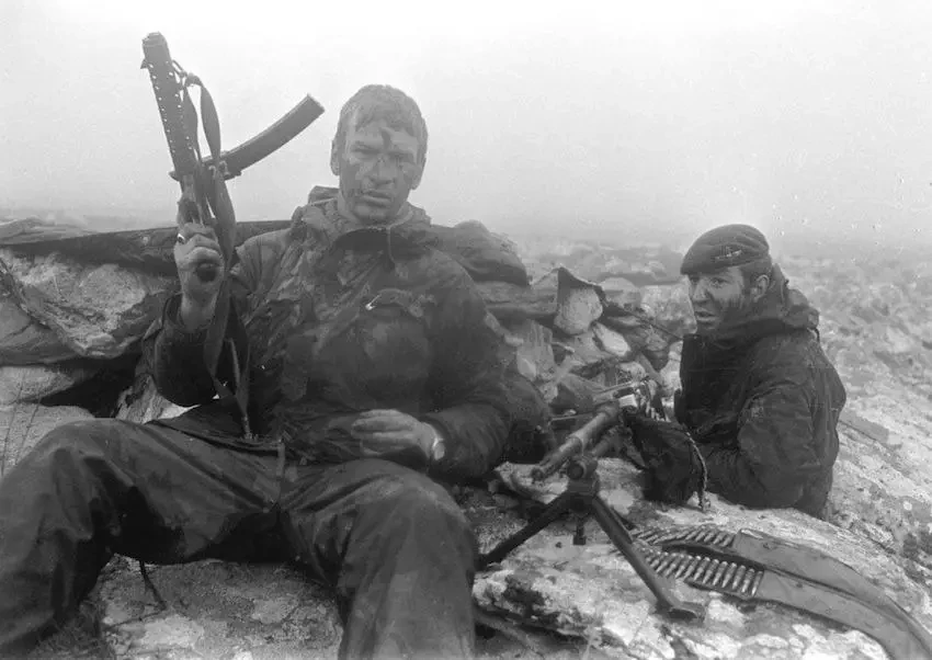 Британские парашютисты из 3-го парашютно-десантного батальона на горе Лонгдон