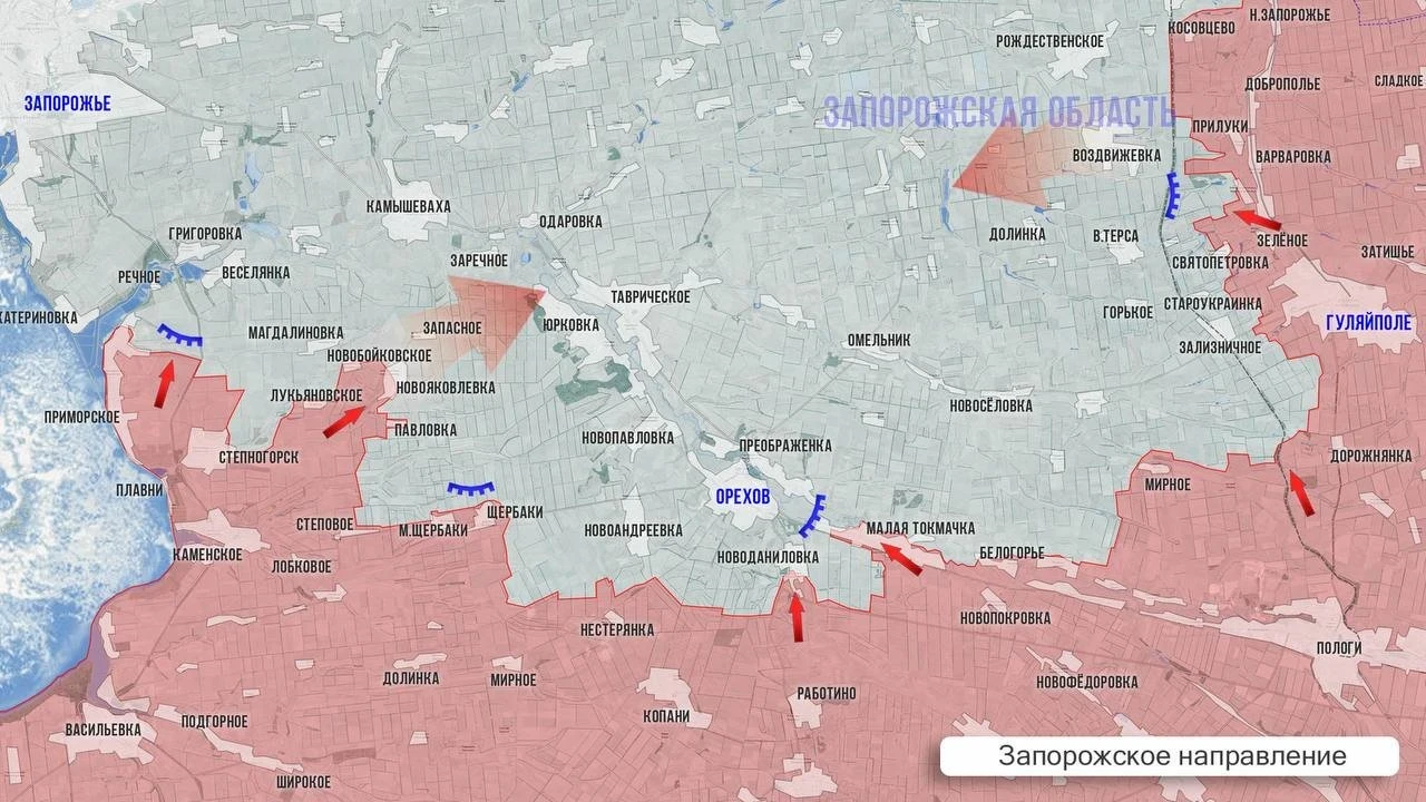 На Запорожском фронте ВС РФ зачищают дачи между Приморским и вчера освобождённым Речным. Штурмовые группы действуют на окраинах соседней Веселянки. Плацдарм наших военных на линии Приморское - Речное - Веселянка прикроет силы, наступающие на Юрковку и охватывающие Ореховский узел обороны ВСУ. Продолжаются бои в районе Новояковлевки, Павловки и Новобойковского. ВСУ усилили оборону Запорожья новыми расчетами БПЛА, работает артиллерией по нашим позициям с противоположного берега Днепра.