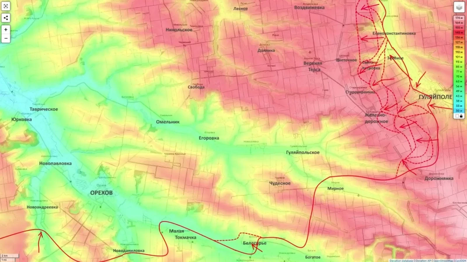 Наблюдается движение к Гуляйпольскому и Верхней Терсе. Цель - замкнуть клещи вокруг Орехова с востока и северо-востока, разгромить группировку врага и открыть путь на Вольнянск и Запорожье.