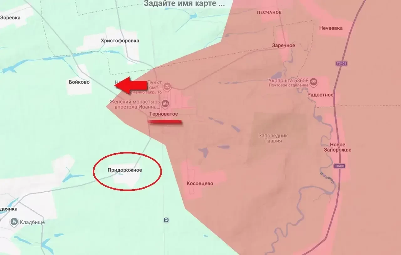 После недавнего освобождения Терноватого в Запорожской области штурмовые подразделения «восточной» группировки армии России продолжили продвижение на этом участке фронта, вклинившись в глубину обороны противника и освободив относительно небольшой населённый пункт Придорожное.