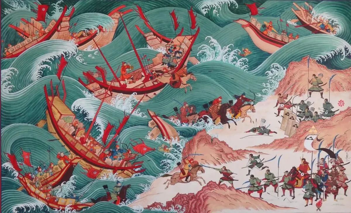 Отношение Кореи с Японией испокон веку были... сложные. У нас часто вспоминают об Имиджинской войне и прочих агрессиях самураев на полуостров. Но как-то забывается, что флот хана Хубилая, дважды попытавшегося завоевать Японию, был корейским. Корейцы — хорошие моряки, одни из лучших в этих краях. А на фоне китайцев, которые в военно-морских вопросах никогда звёзд с неба не хватали, так и просто терминаторы!