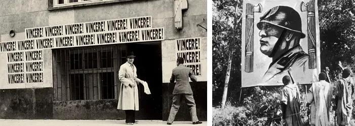 «Vincere!» («Победа!») - лозунг фашистской партии, а Credere Obbedire Combattere («Верьте, повинуйтесь, боритесь»), был его слоганом