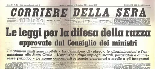Ежедневная газета Ватикана, которая не подвергается цензуре, L'Osservatore Romano, печатает вскоре после провозглашения новой расовой политики статью, в основном призывающую к принятию мер против евреев, рассматривая евреев как опасность и говоря, что церковь всегда призывала к ограничению их прав. Эта статья в ежедневной газете Ватикана затем была подхвачена всей фашистской прессой по всей Италии, чтобы оправдать введение антисемитских расовых законов, которые вскоре должны вступить в силу.