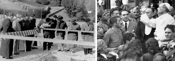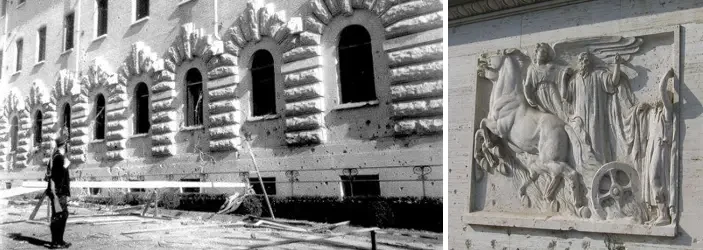 5 ноября 1943 года - В этот день Ватикан пострадал от первого из двух бомбардировок Второй мировой войны. На фото слева: фотография, демонстрирующая разрушения, причиненные одному из зданий в Ватикане. На фото справа: бомба упавшая возле железнодорожного вокзала, а на стене, украшенной скульптурой Илии, все еще видны следы осколков. Источник: Vatican News