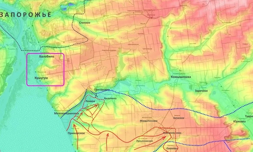 «Что интересно: украинские околовоенные волонтёры отмечают, что наши диверсионно-разведывательные группы начали проникать севернее реки Конка. Это севернее Приморского, Речного, и их видели даже в районе Кушугума и Балабино. То есть, это уже непосредственные пригороды Запорожья, потому что Балабино плавно переходит в южные окраины Запорожья», - проинформировал Подоляка.