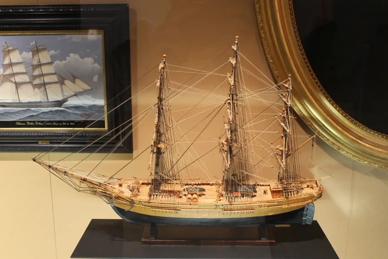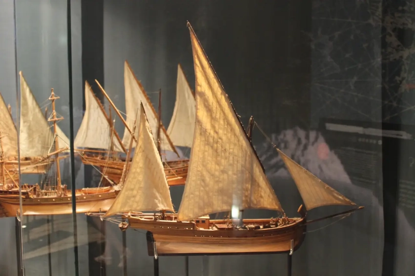 В частности здесь очень много моделей судов с латинскими косыми парусами, являвшимися характерной чертой парусников Средиземноморья