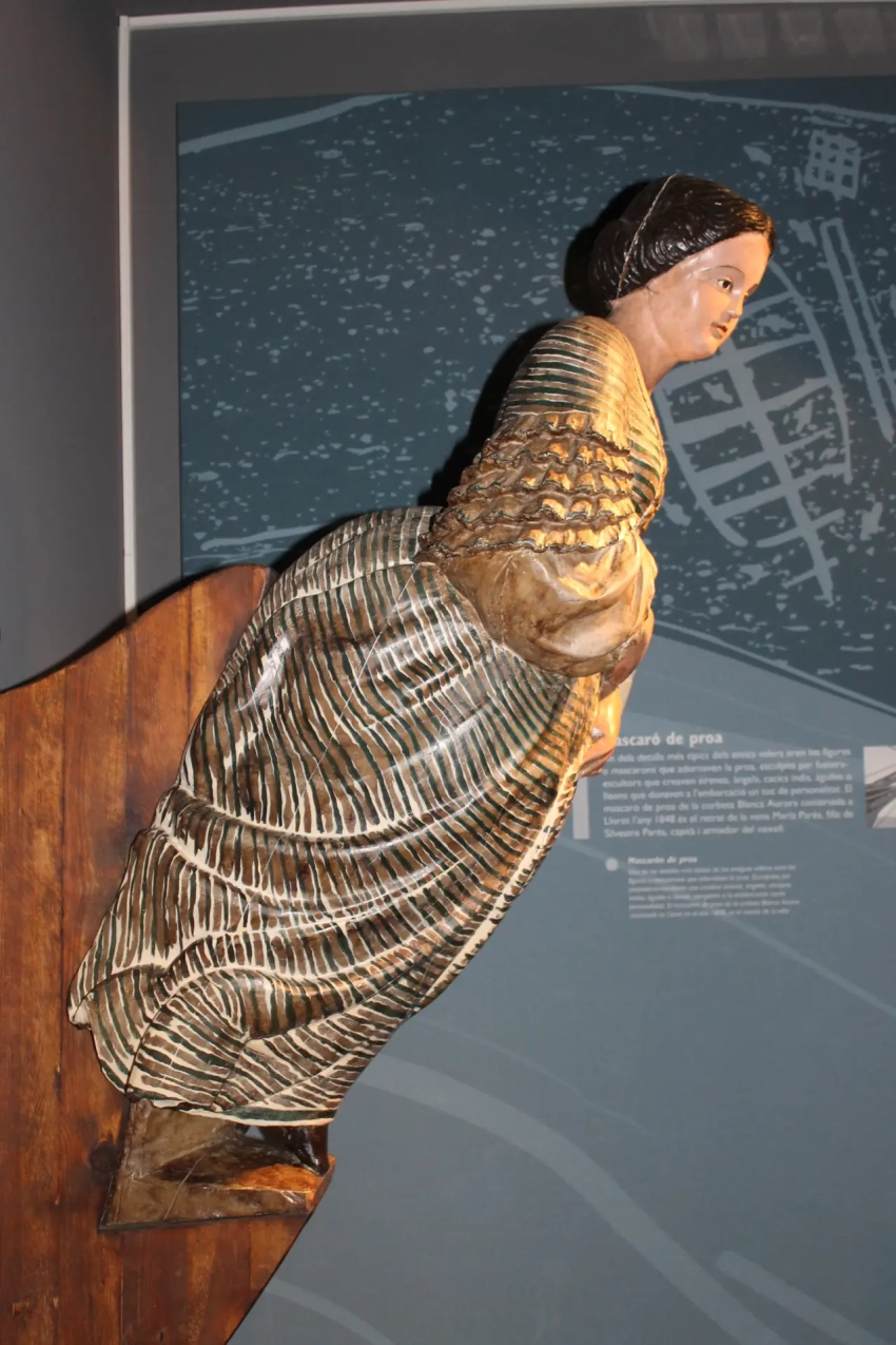 Типичной деталью всех парусников была носовая фигура. Для их изготовления привлекались плотники-скульпторы (они также резали изображения святых для храмов!), вырезавшие из дерева фигуры сирен, индейских вождей, орлиные и львиные головы, словом, всё, что придавало судам их неповторимый облик. Так, нос корвета «Белла Аврора», построенного в Льорете в 1848 году, украшала скульптура девушки Марии Парес, дочери Сильвестра Пареса, капитана и владельца этого корабля.