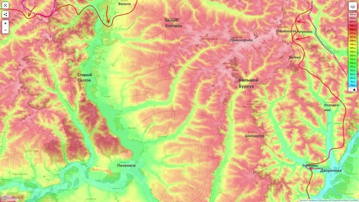 Эксперты полагают, что российское командование сейчас формирует в Харьковской области новый плацдарм шириной восемь километров, проходящий по линии Чугуновка - Меловое.
