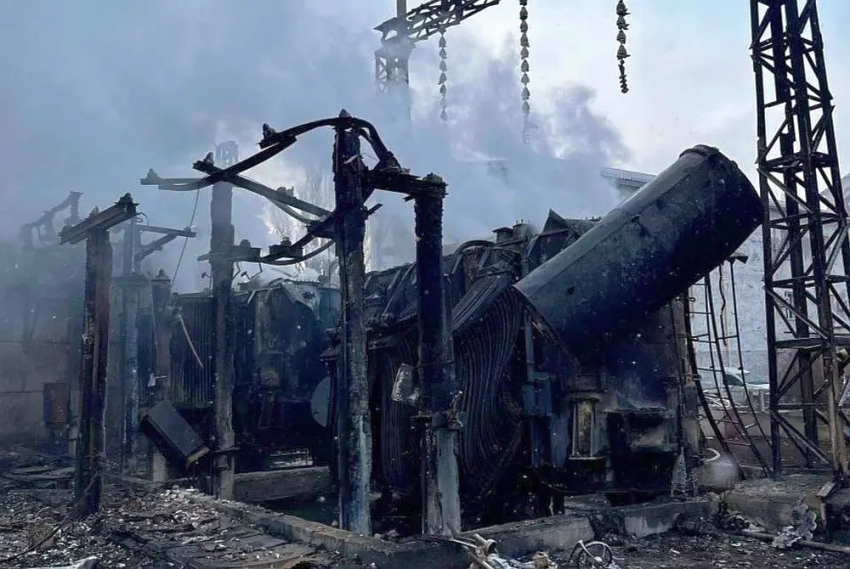 Били по подстанции на этот раз капитально. Местные сообщают о прилете около десяти беспилотников. Пожар еще не потушен.