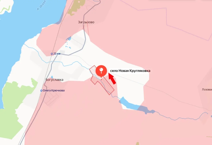 Сегодня российские войска развили успех, освободив южную часть Новой Кругляковки. В районе этого села и соседней Богуславки противник оказался отрезан от подразделений, находящихся на других участках левобережья Оскола, севернее.