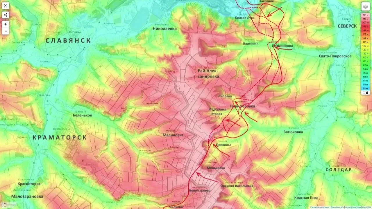 До этого уже была информация, что российские штурмовики пробились к окраинам микрорайона Северный и заняли там позиции в частном секторе. Сейчас бои идут и на востоке от города, а также возле Святогорска, Александровки и Дробышево. В украинском командовании тоже подтверждают, что обстановка под Красным Лиманом для них стала крайне тяжёлой.