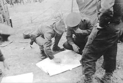 Американский военный советник капитан Лерч и корейский офицер обсуждают противопартизанские акции