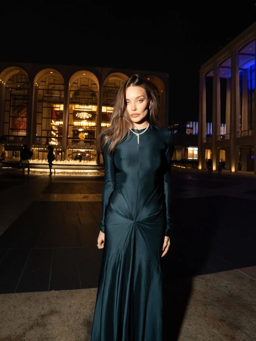 Коновалова опубликовала в соцсетях фотографии с праздника, на которых она позирует в длинном платье на молнии. Модель, которую ранее критиковали за неуместный внешний вид, расстегнула платье и фотографировалась в различных позах. Образ дополнили колье с бриллиантами и сумка Hermes.