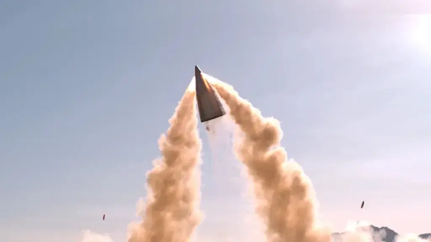Фотография, на которой запечатлено испытание носовой части межконтинентальной баллистической ракеты LGM-35A Sentinel