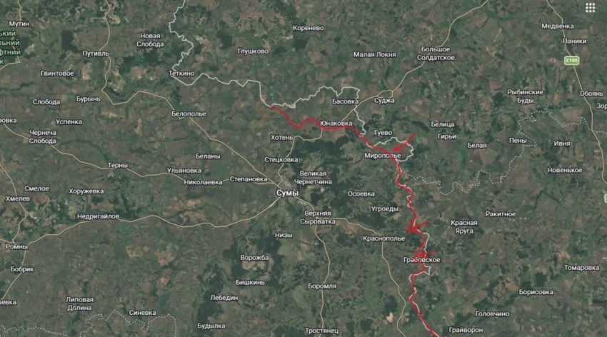 Бойцы Вооружённых сил Российской Федерации (ВС РФ) продолжают двигаться в Сумской области и, судя по всему, начинают обходить Сумы с юга. Об этом рассказал военный блогер Юрий Подоляка в своём последнем обзоре.
