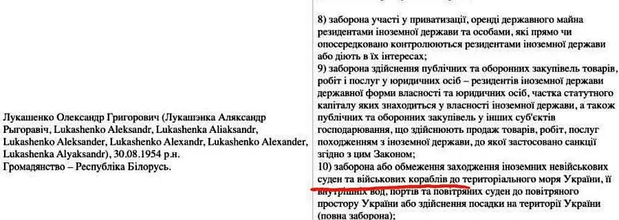 Жаль, что союзная Белоруссия не имеет выхода к морю. Что, кстати, не помешало Зеленскому накануне подписать указ, который вводит запрет на заход белорусских невоенных судов и военных кораблей в территориальные воды Украины, ее внутренние воды и порты. Это не шутка, соответствующий документ принят официально в рамках объявления персональных санкций в отношении президента РБ Александра Лукашенко.