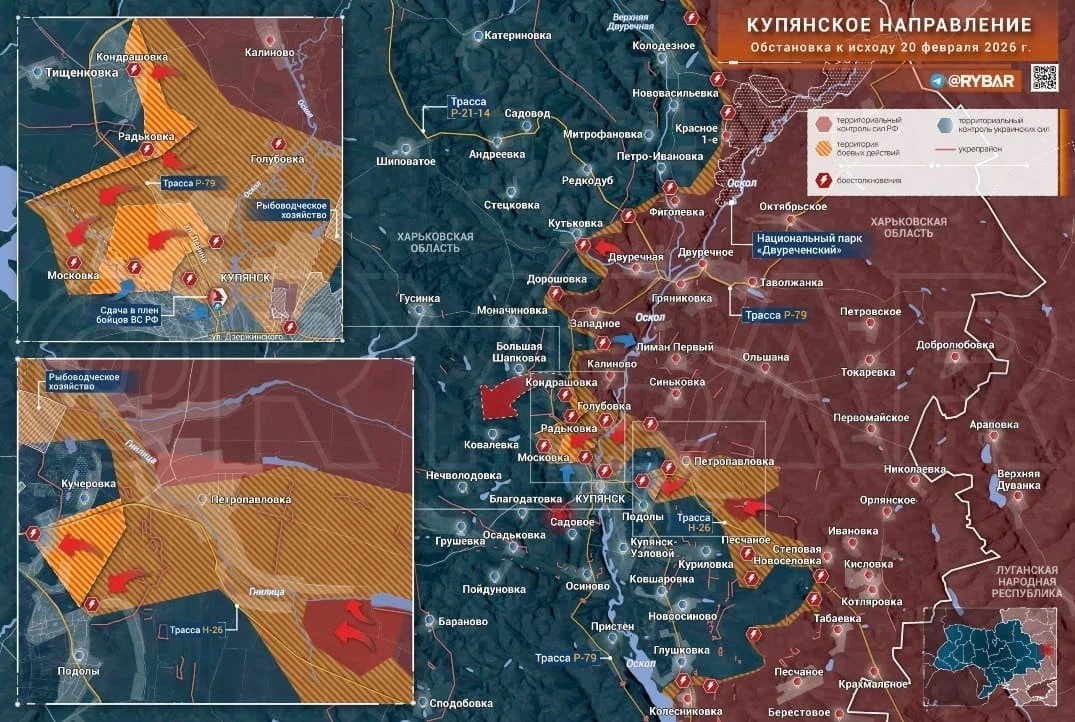Карта боевых действий на Купянском фронте: данные на 21.02.2026