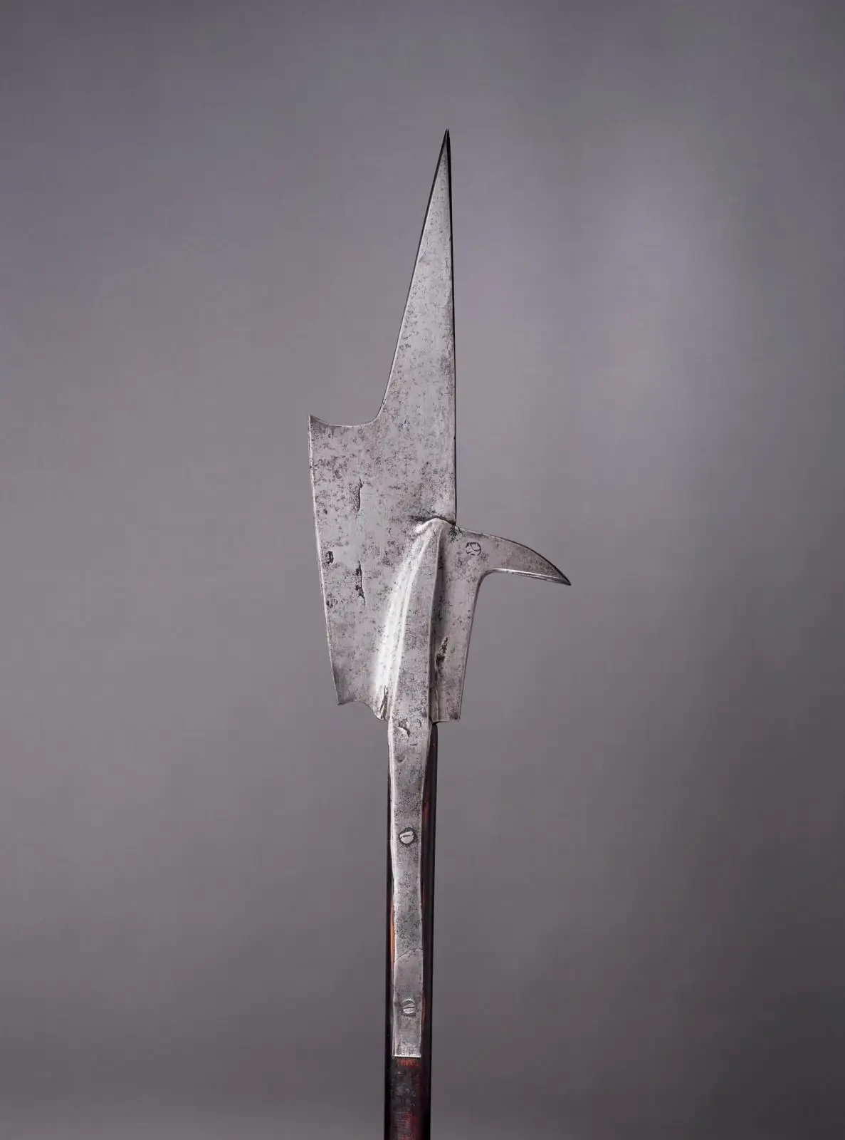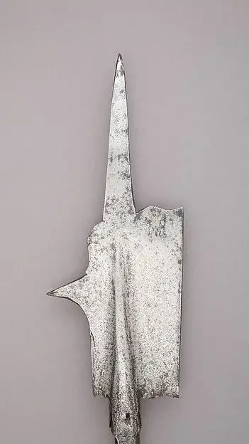 Поллэкс. Оружие похожее на алебарду, но не алебарда. У поллэкса острие представляет собой отдельную деталь, а вместо крюка имеется молоток с граненой поверхностью. Метрополитен-музей, Нью-Йорк