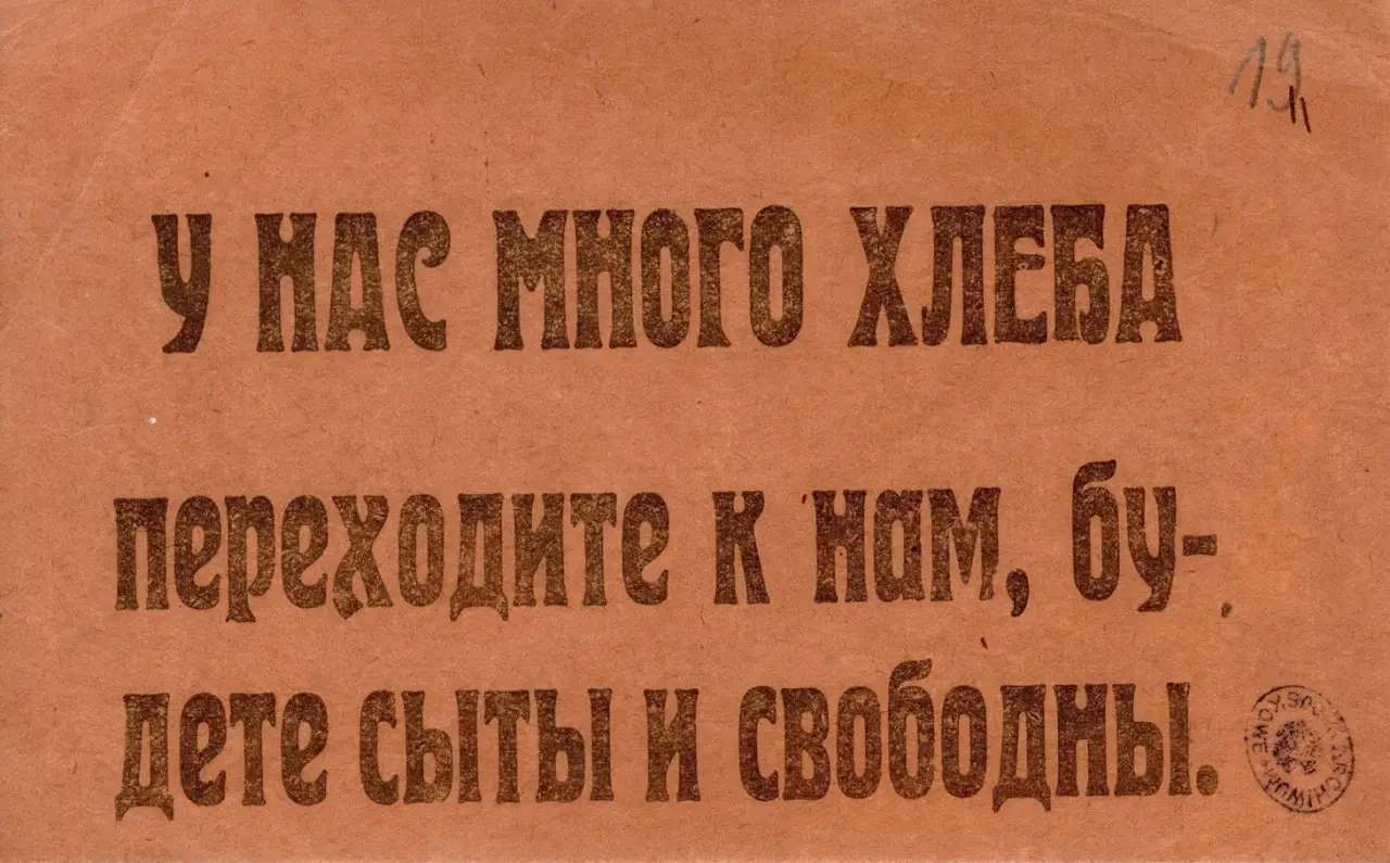 Листовка c обращением ВЦИК к польским рабочим, крестьянам и солдатам «Переходите к нам!». Архив РГАСПИ: КП-104049 ПМ-3375.