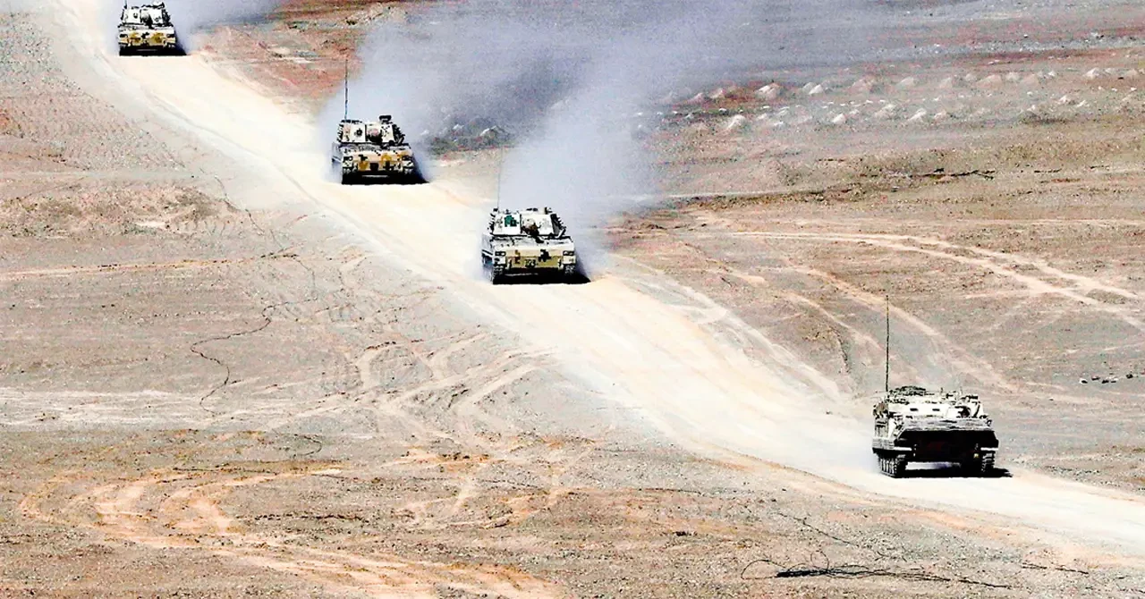 Китайские войска провели очередные маневры с бронетехникой в гористой местности. На этот раз отрабатывалась переброска тяжёлой техники в заданный район для последующих стрельб по целям.