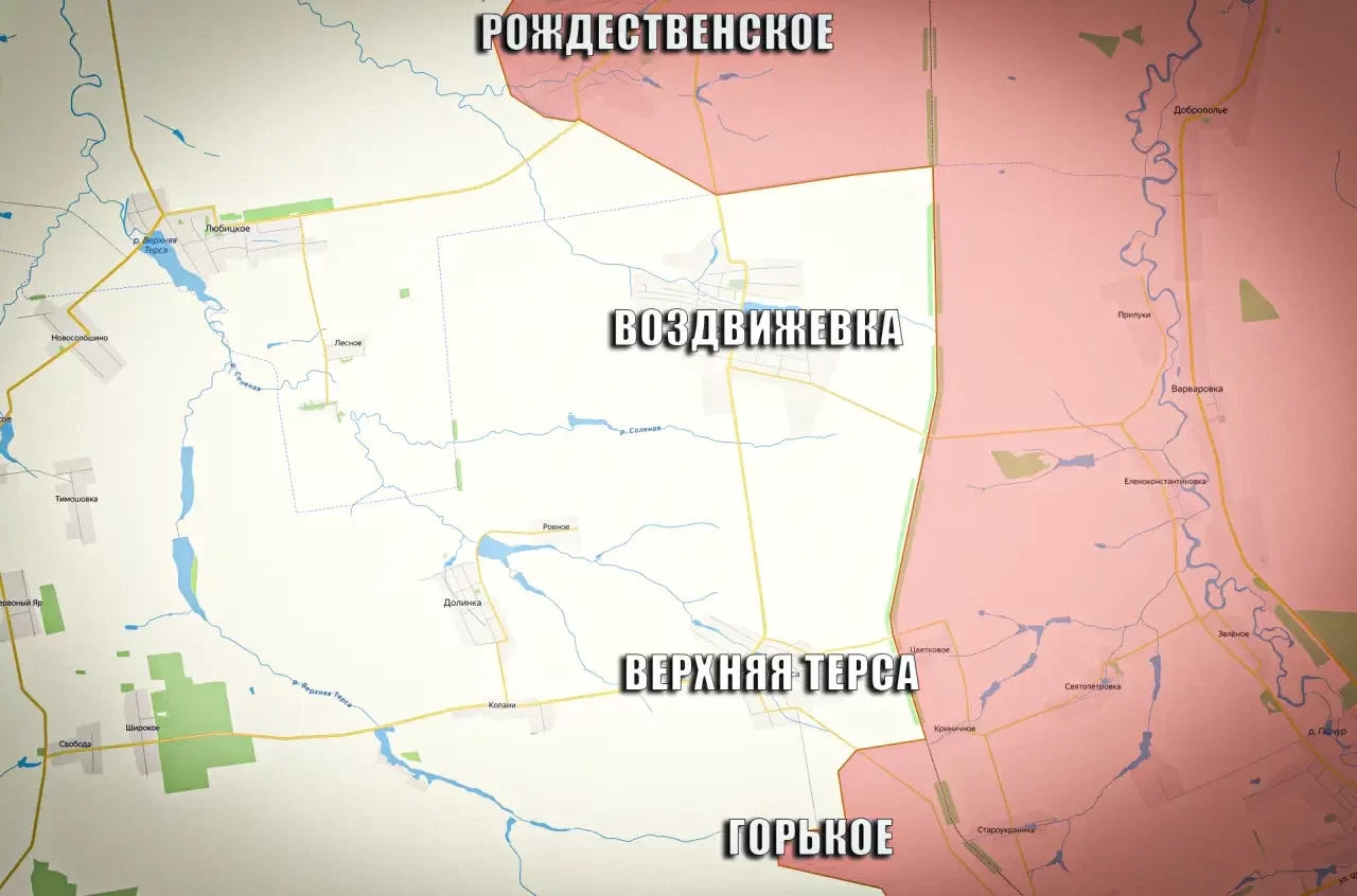 Интересно, что севернее Воздвижевки и Верхней Терсы ВС РФ ранее освободили Рождественское. Это в совокупности с занятым селом Горькое открывает возможность зажать оккупированные украинскими боевиками населенные пункты с двух сторон, сообщает "Военное обозрение".