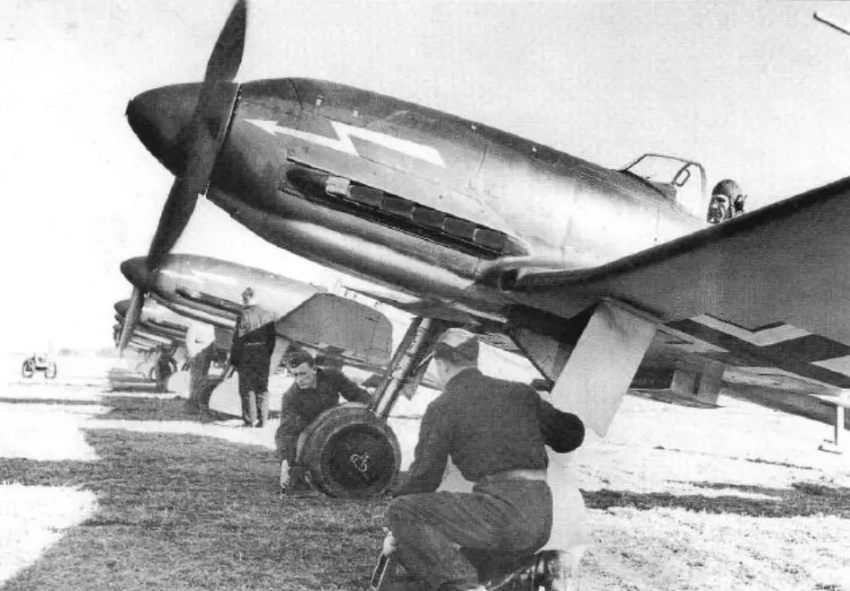 И что примечательно, скорость предсерийной машины с радиатором и увеличенным хвостовым оперением сохранилась на очень приличном уровне, на высоте 5000 метров она составила 650–660 км/ч, а это было почти на 100 км/ч больше, чем у последней версии Messerschmitt Bf 109E.