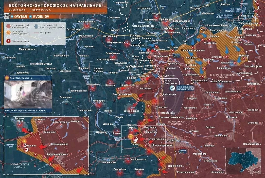 До жилой застройки Малой Корчаковки нашим штурмовикам остается пройти менее километра. За февраль под контроль армии России перешло около 80 км² территории и 5 населенных пунктов. Группировка «Север» продолжает развивать наступление северо-восточнее Мирополья, укрепляя фланги.
