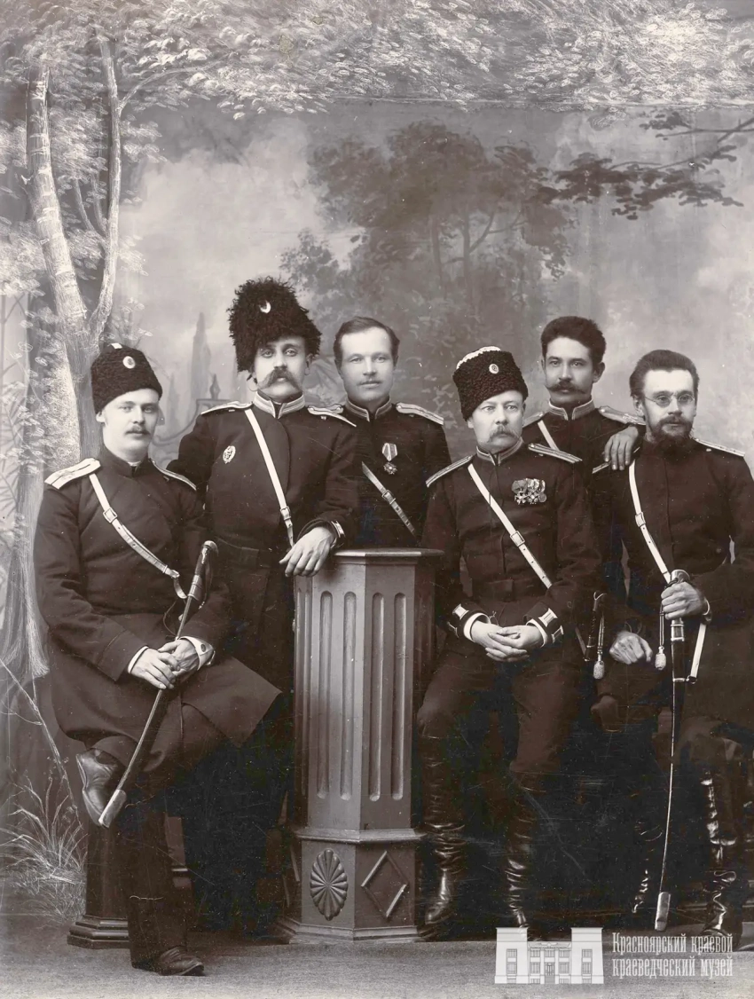 Фотография из фондов КККМ. Групповой снимок. Офицеры Красноярской казачьей сотни. Нач. ХХ в.