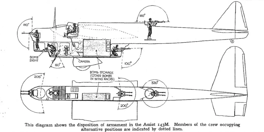 Компоновочная схема Amiot 143 из Airwar.ru (Серийные машины, начиная с 41-й)