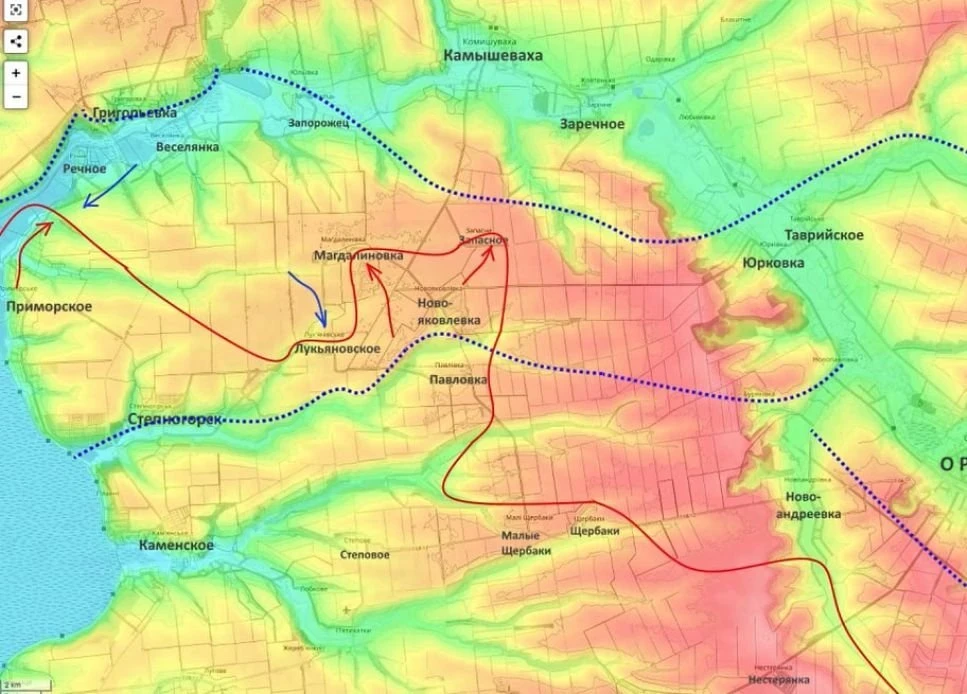 «В полосе группировки «Восток» ситуация плюс-минус такая же. Наши подразделения 35-й и пятой армии из района Гуляйполя продолжают атакующие действия по направлению к Верхней Терсе, продолжают охват этого населённого пункта и попытки закрепления уже на его территории», - уточнил блогер.
