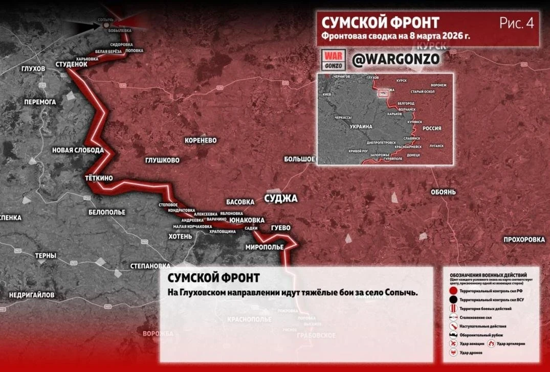 Свежие новости СВО от Юрия Подоляки на сегодня, 09.03.2026: карта боевых действий