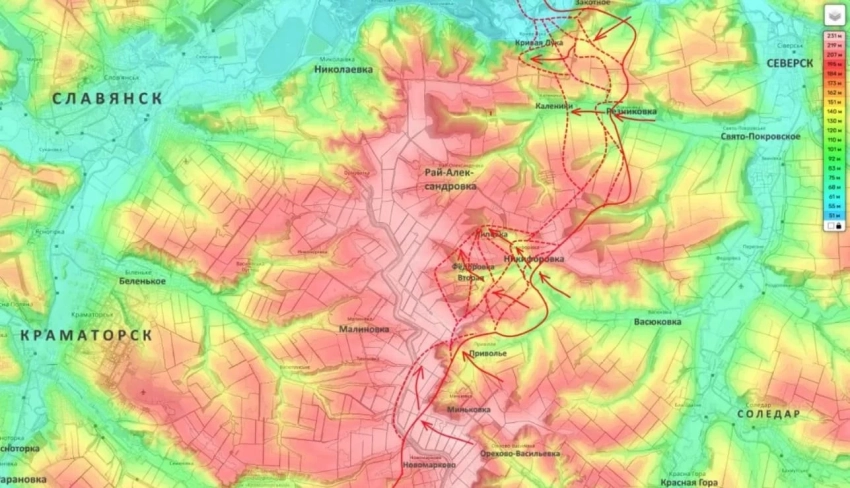 Одновременно поступают данные об усилении давления ВС РФ на Долгую Балку с восточного направления. Это село расположено немного юго-западнее Ильиновки, через которую, помимо прочего, проходит дорога, соединяющая Константиновку и Долгую Балку.