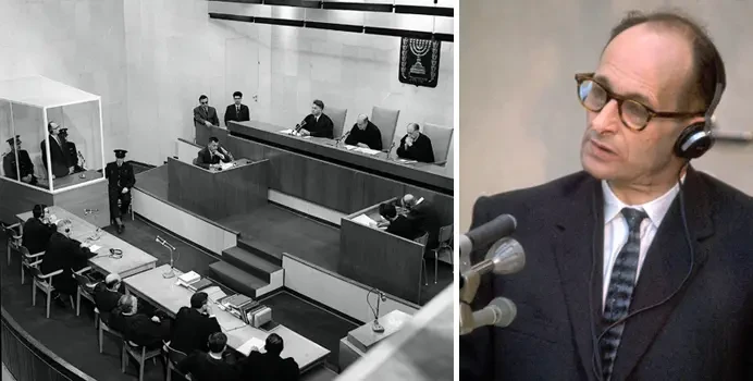 23 мая 1960 года премьер-министр Израиля Давид Бен-Гурион объявляет всему миру, что нацистский военный преступник Адольф Эйхман взят в плен и предстанет перед судом в Израиле. Эйхман, нацистский офицер СС, организовавший «окончательное решение еврейского вопроса» Адольфом Гитлером, был схвачен израильскими агентами в Аргентине 11 мая и через девять дней тайно вывезен в Израиль.