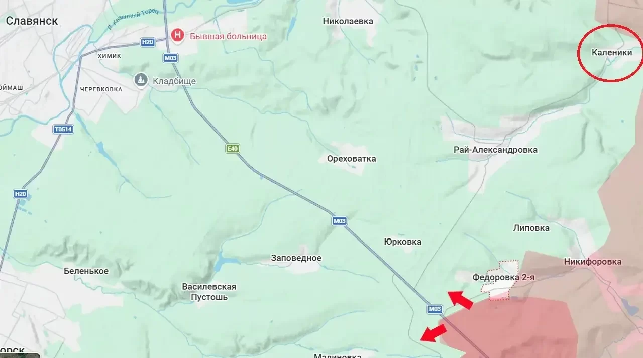 Подразделения российской армии освободили населенный пункт Каленики, расположенный к востоку от оккупированного ВСУ Славянска. После закрепления в Калениках ВС РФ получат возможность подтянуть на новые позиции ствольную артиллерию и расчеты БПЛА для ударов по позициям противника в Славянске.