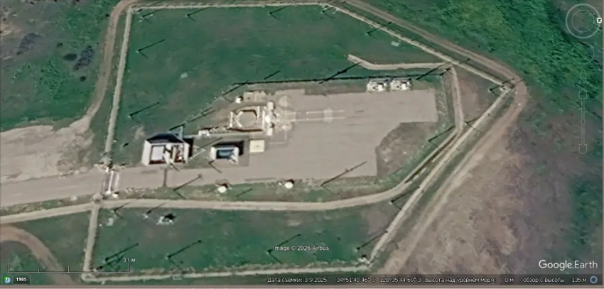 Спутниковый снимок Google Earth: РЛС AN/TPY-2 в 10 км к западу от города Куми. Снимок сделан в июне 2024 года