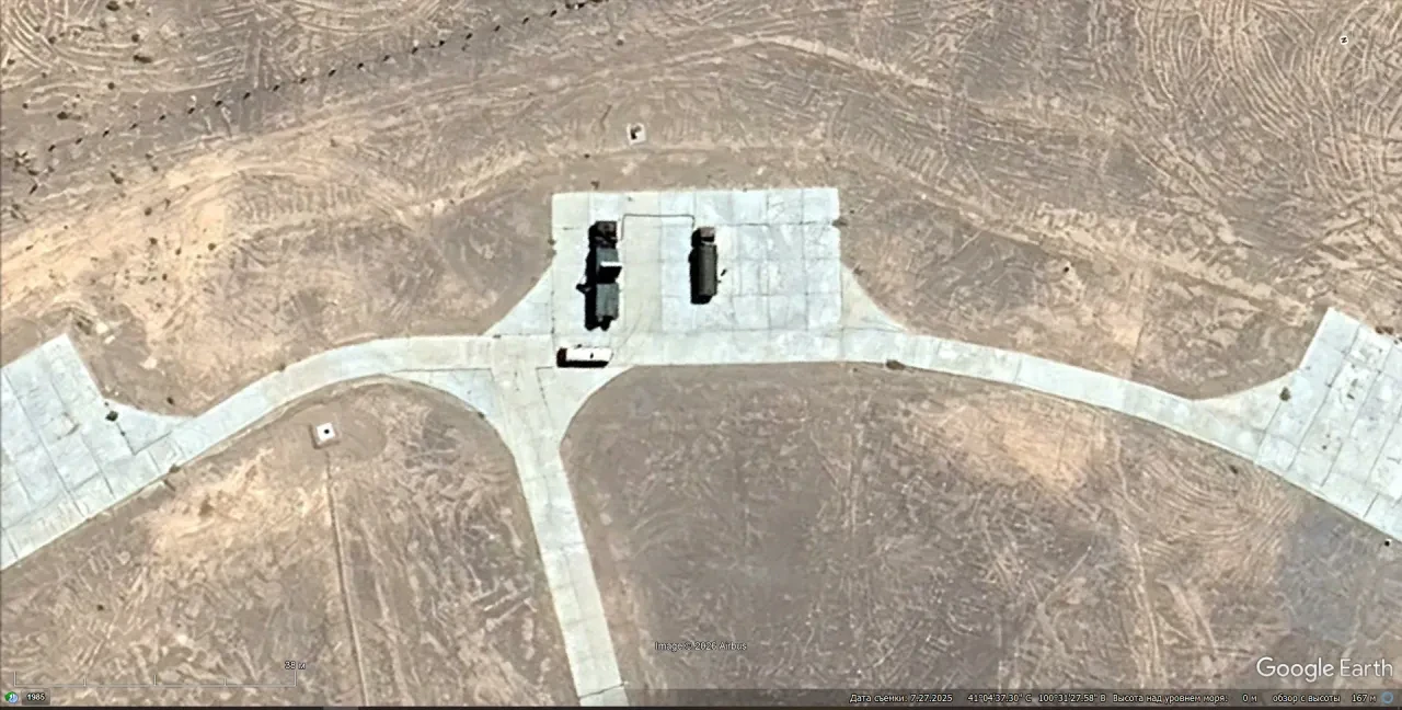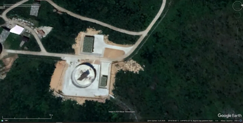 Спутниковый снимок Google Earth: РЛС JYL-1A на полигоне «Площадка № 72». Снимок сделан в июле 2025 года