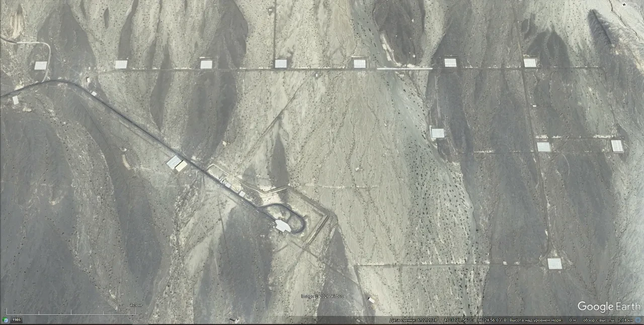 Спутниковый снимок Google Earth: новые стартовые площадки на ракетном полигоне Корла. Снимок сделан в июне 2024 года