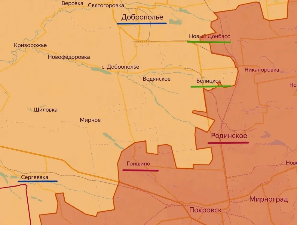 Есть успехи у российских войск и на соседних участках фронта. В частности, активизировались наступательные действия ВС России на Красноармейском направлении. Особенно успешно они действуют к югу от Сергеевки. Отмечается продвижение в окрестностях Гришино и Новоалександровки. А к западу от Родинского враг предпринимает попытки вернуть утерянные позиции.