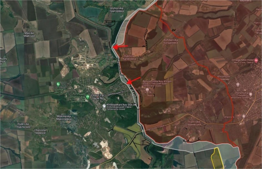На ЧасовЯрском направлении ВС РФ продолжают штурмовые действия в районе Калиновки, в Григоровке, а также восточнее населённого пункта. В Часовом Яре продолжаются бои на окраинах мкр. Октябрьский.