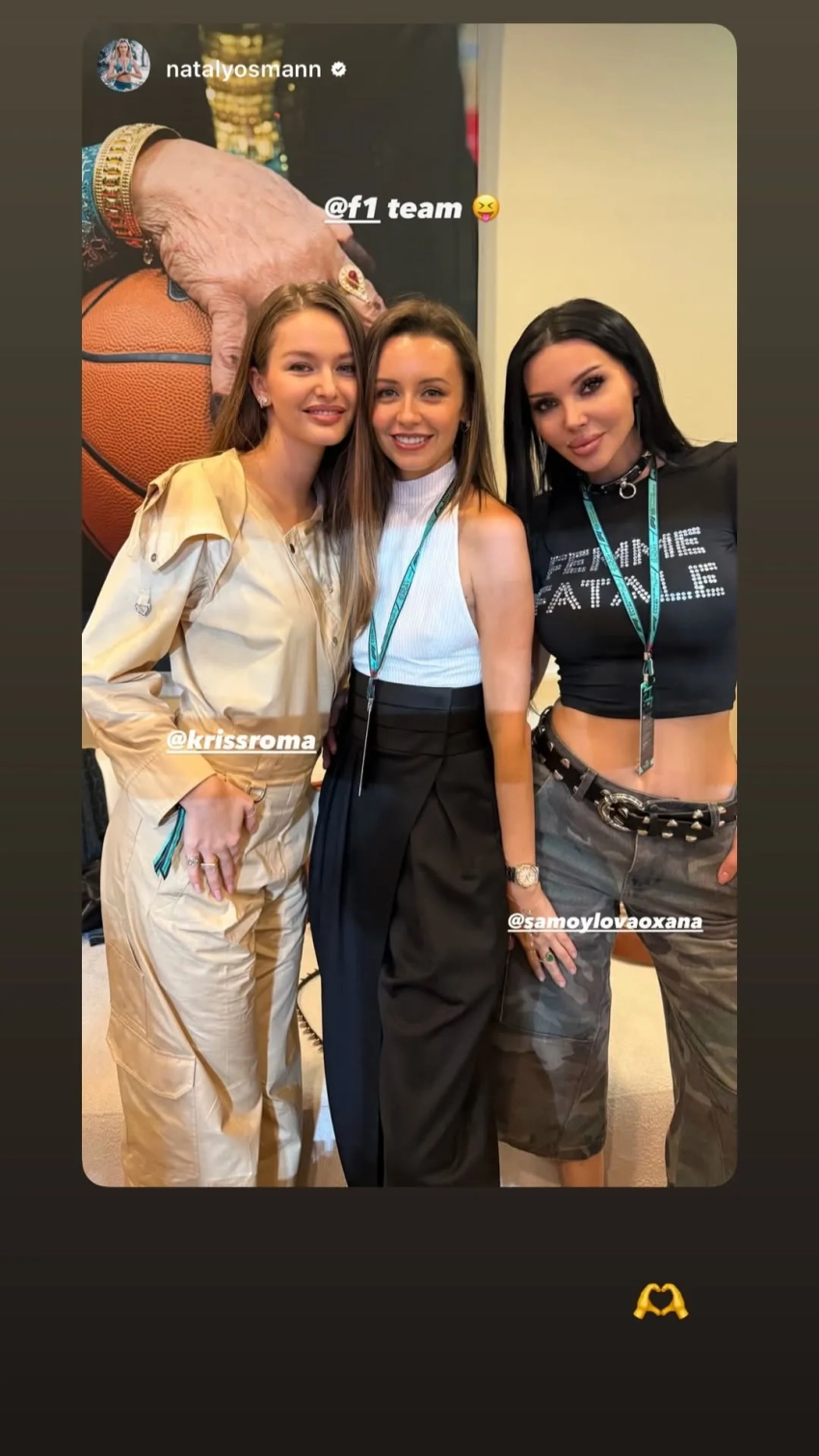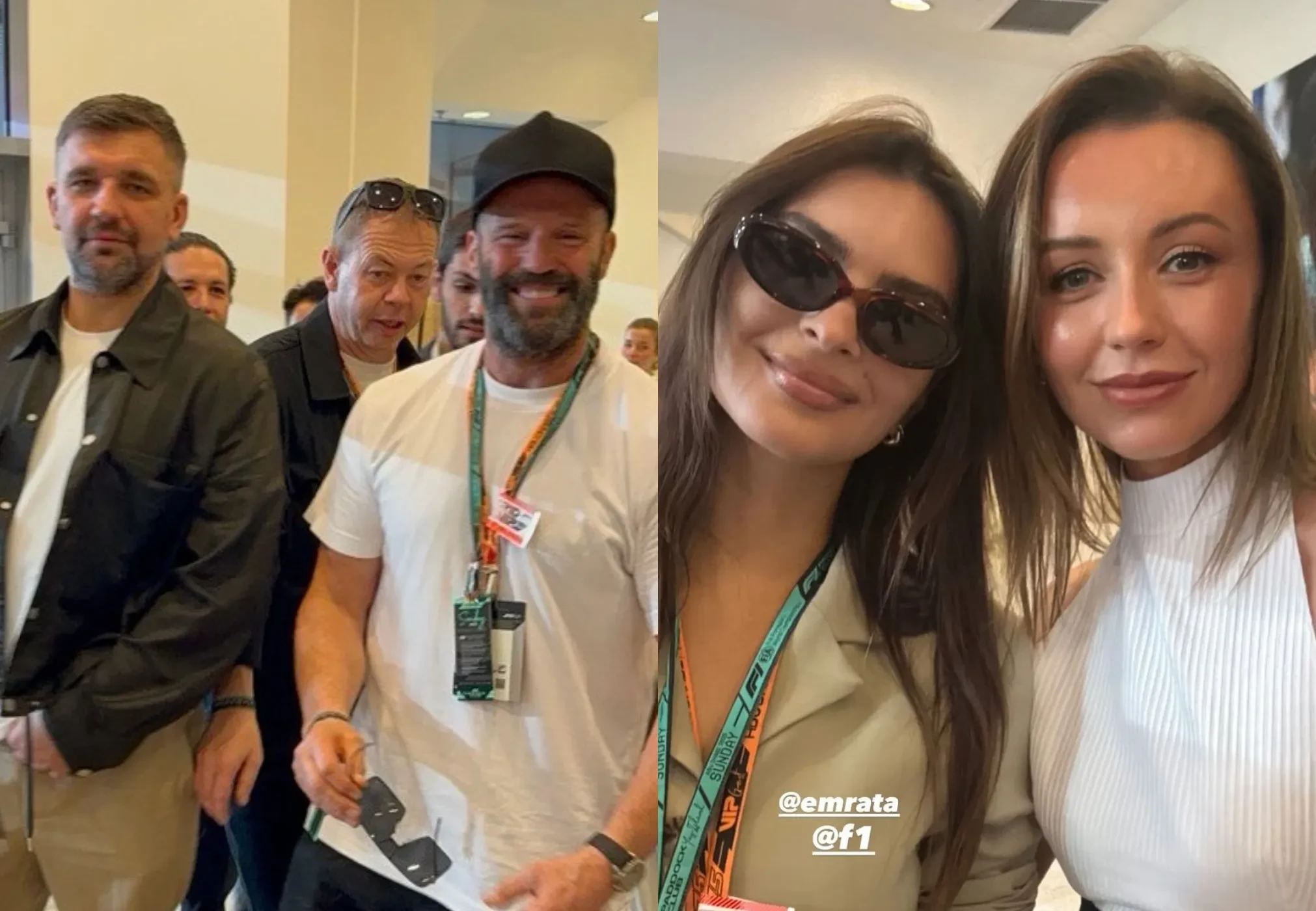 Джейсон Стэтхем с сыном, Баста с женой Еленой Вакуленко-Пинской, Оксана Самойлова и Эмили Ратаковски на Гран-при "Формулы-1"