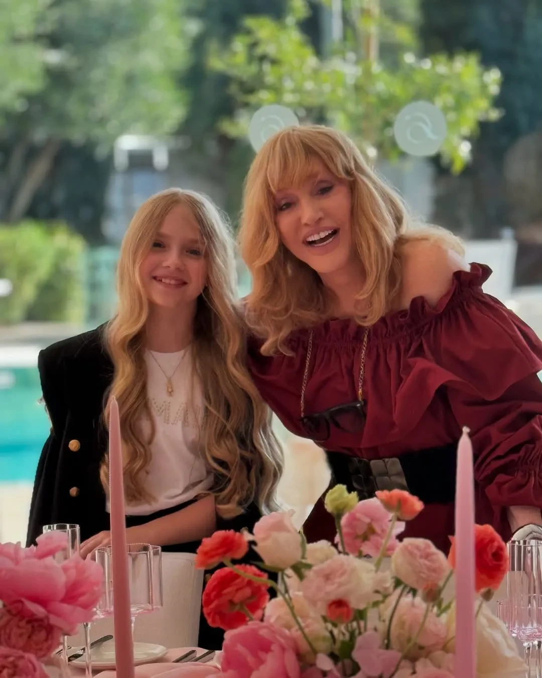 День рождения певица отмечала в платье глубокого красного оттенка с широким ремнём на талии и открытыми плечами. Судя по фото, праздник прошёл на веранде дома семьи у бассейна и был оформлен в розовых тонах: на столах, укрытых розовой скатертью, между букетами роз разных оттенков розового стояли бокалы и свечи в цвет.