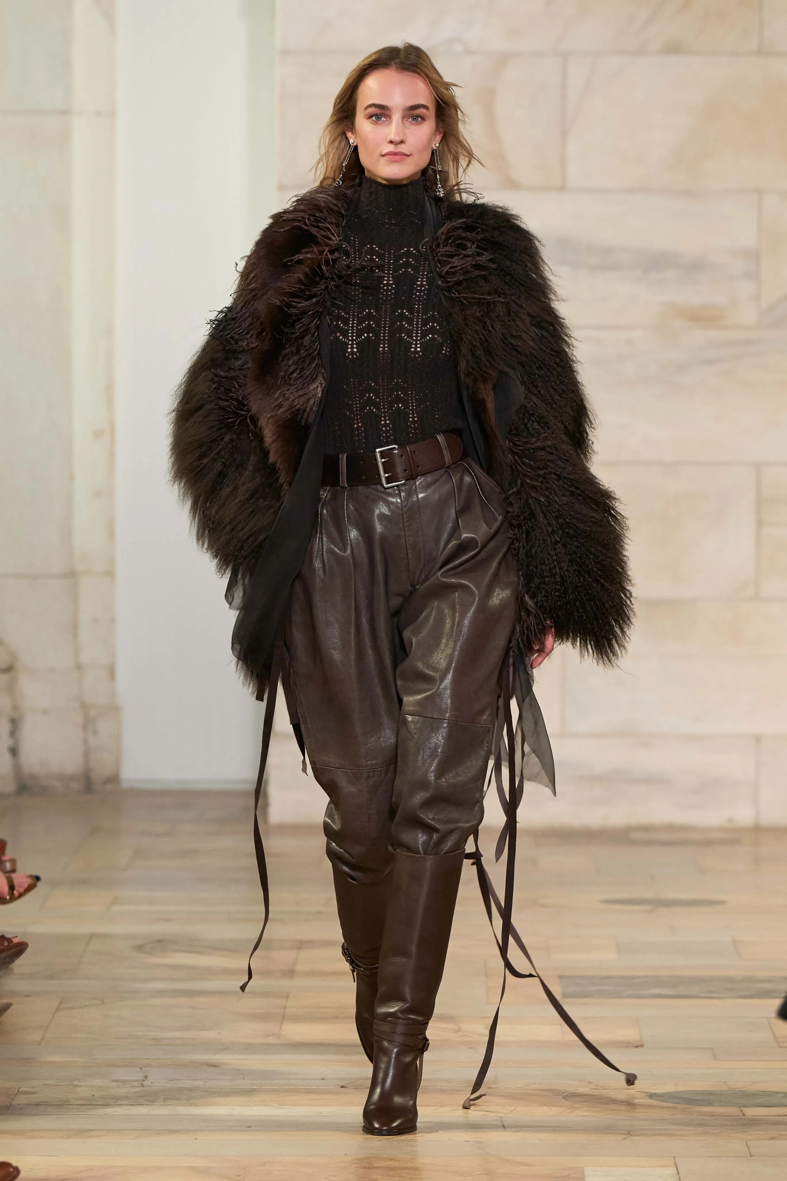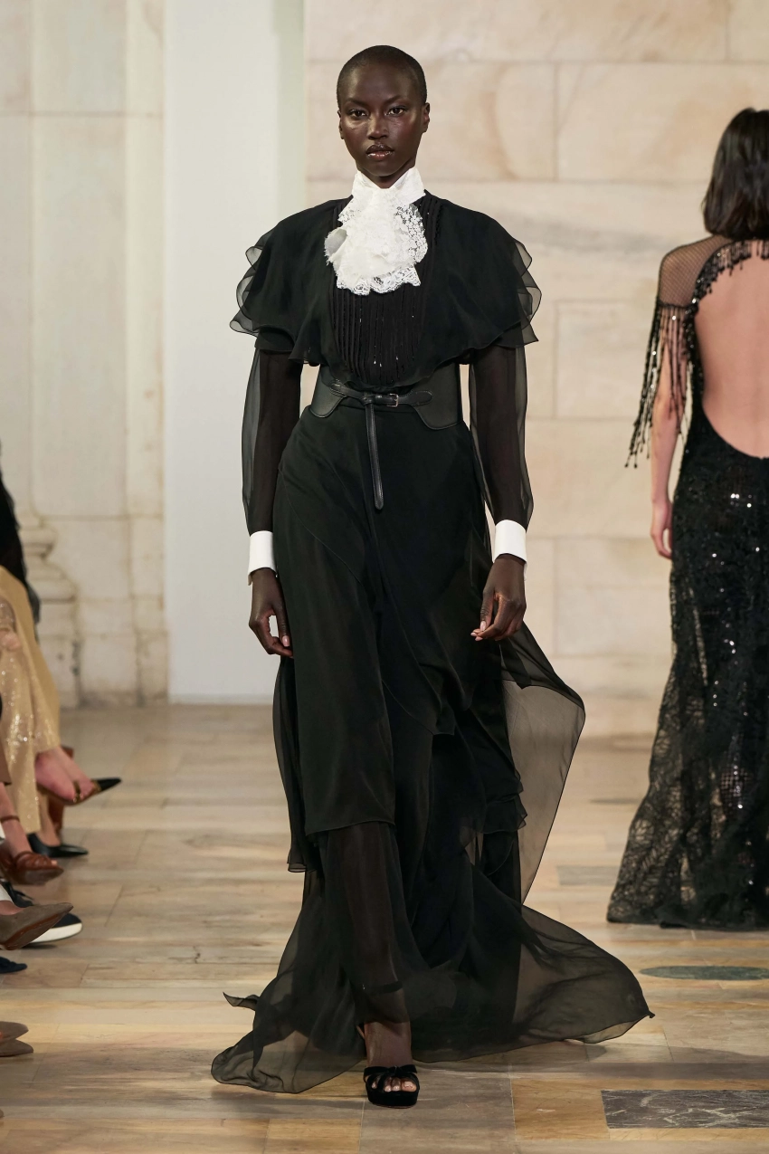 85-летний американский дизайнер представил коллекцию в чёрных и пастельных оттенках. Модели дефилировали в вечерних платьях в пол, вязаных кардиганах, укороченных брюках на высокой посадке, подчеркнув талию ремнём, в блузах с высокой горловиной и рюшами в стиле барокко, приталенных пальто, кожаных брюках в сочетании с сапогами в тон и шубах.